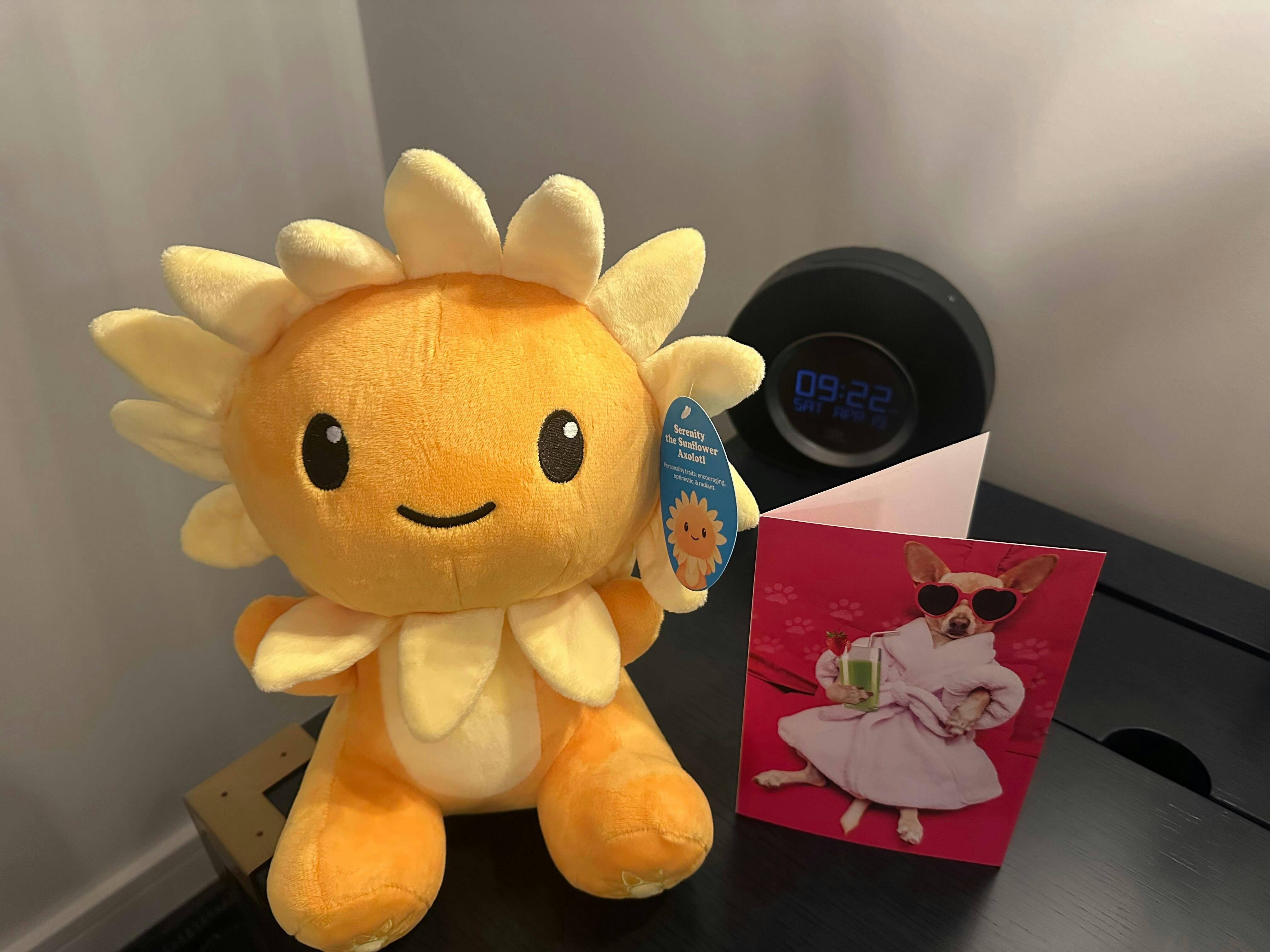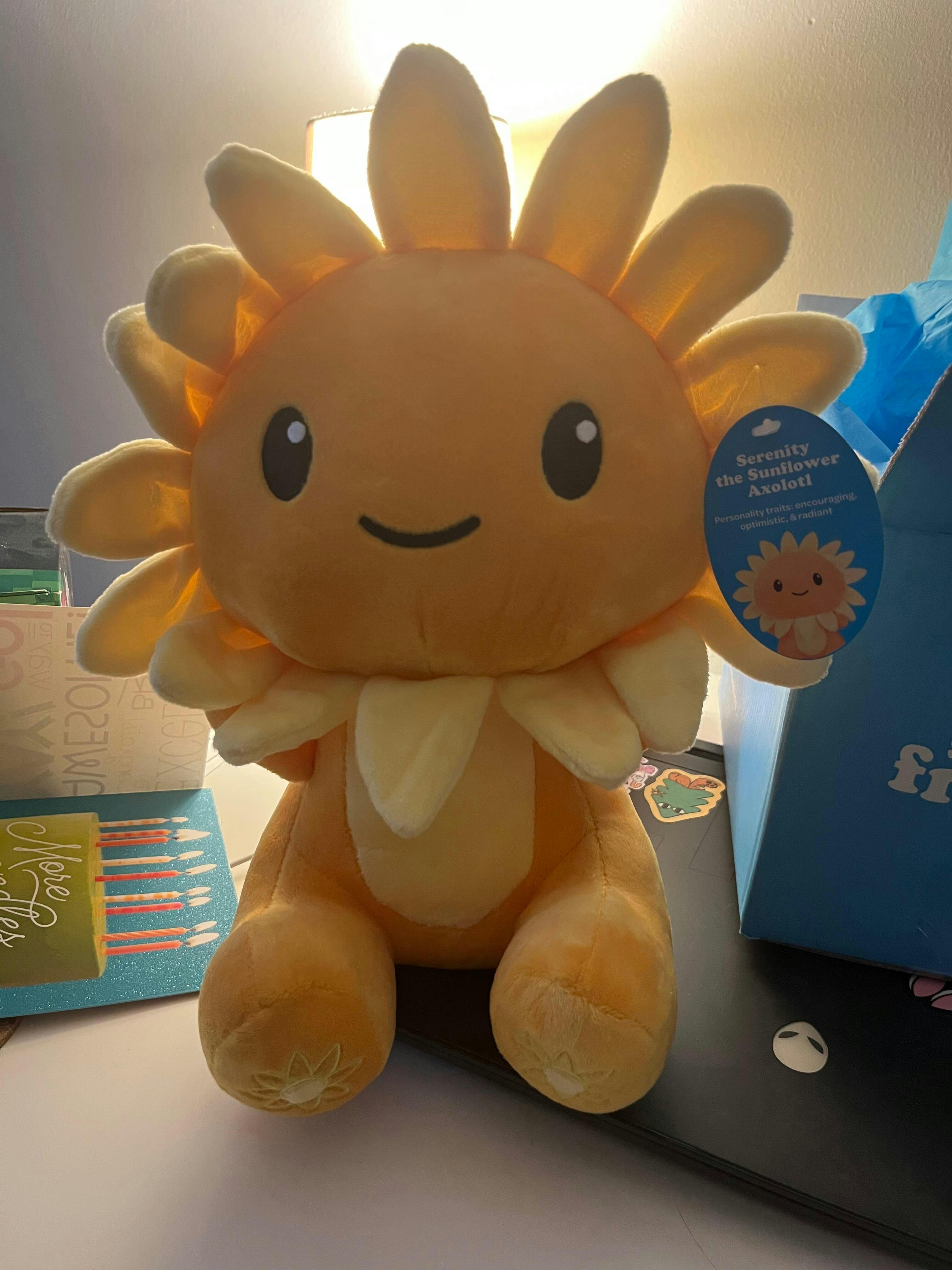 I had never heard of your company before, and when my father died in July, a friend sent me a care package from you that came with a sticker and a candle. I sent her the Cappybara immediately--and she had already sent the Sloth to another friend of ours-- the three of us have been friends since childhood ( pictured.) Yeah we're in our 40's. Yes, we like plushy-buddies!