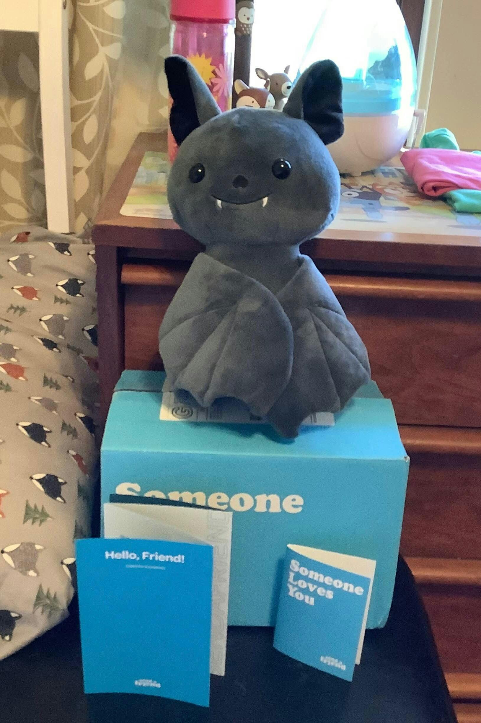 When I saw Binks I knew he'd be a perfect fit for my wife! He's a cute looking bat that came with special Halloween accessories! He came with a hoodie, and the package also included spooky knick nacks like a bracelet and stickers. My wife came home opened the package and fell in love again 😊 The only other man ill allow to share her heart lol! Welcome to the family Binks!