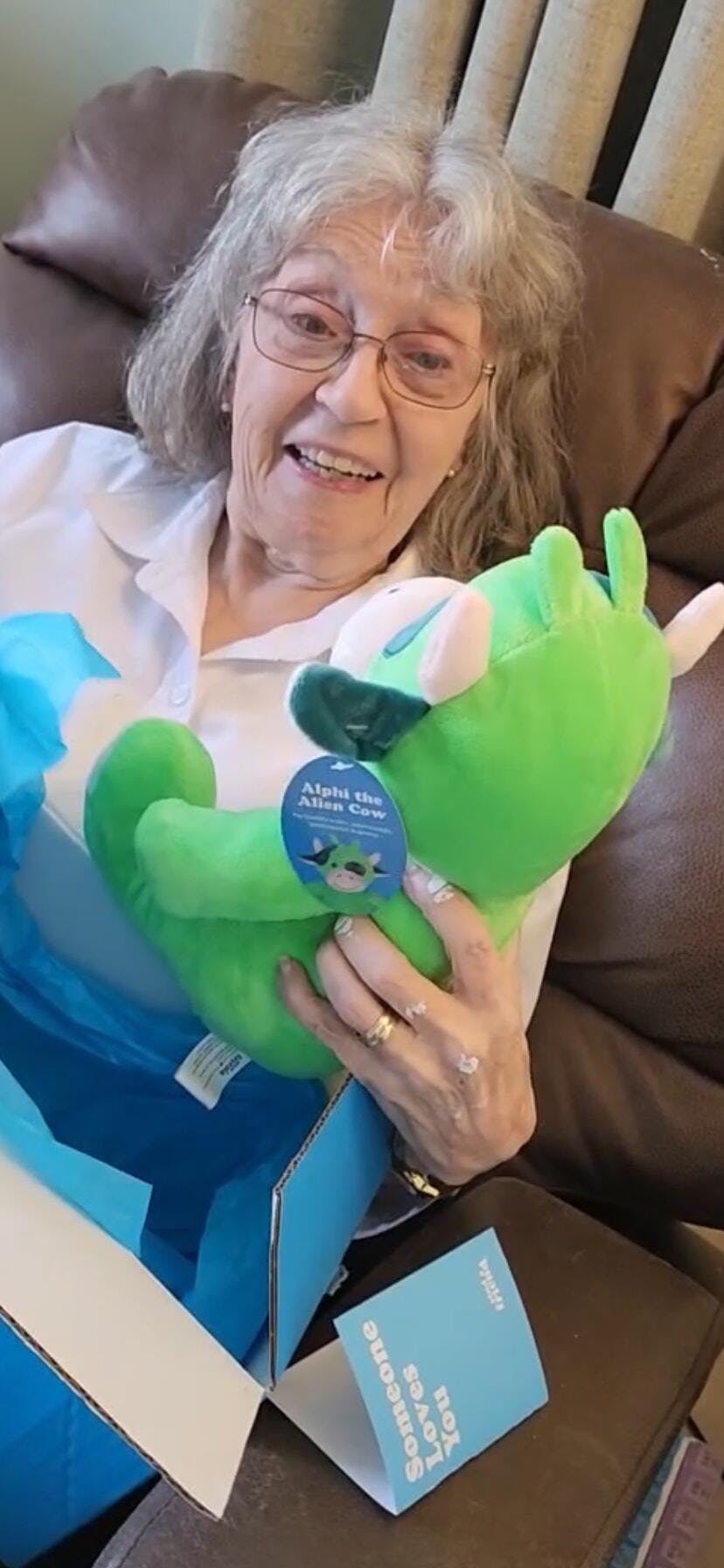 This was a gift to uplift a young friend, who is going through treatments, for a very rare form of cancer. She loved my package and I just wanted to see that smile on her face, as she hugs her Lil dinosaur. Thank you so much for such a heartwarming & uplifting gift.