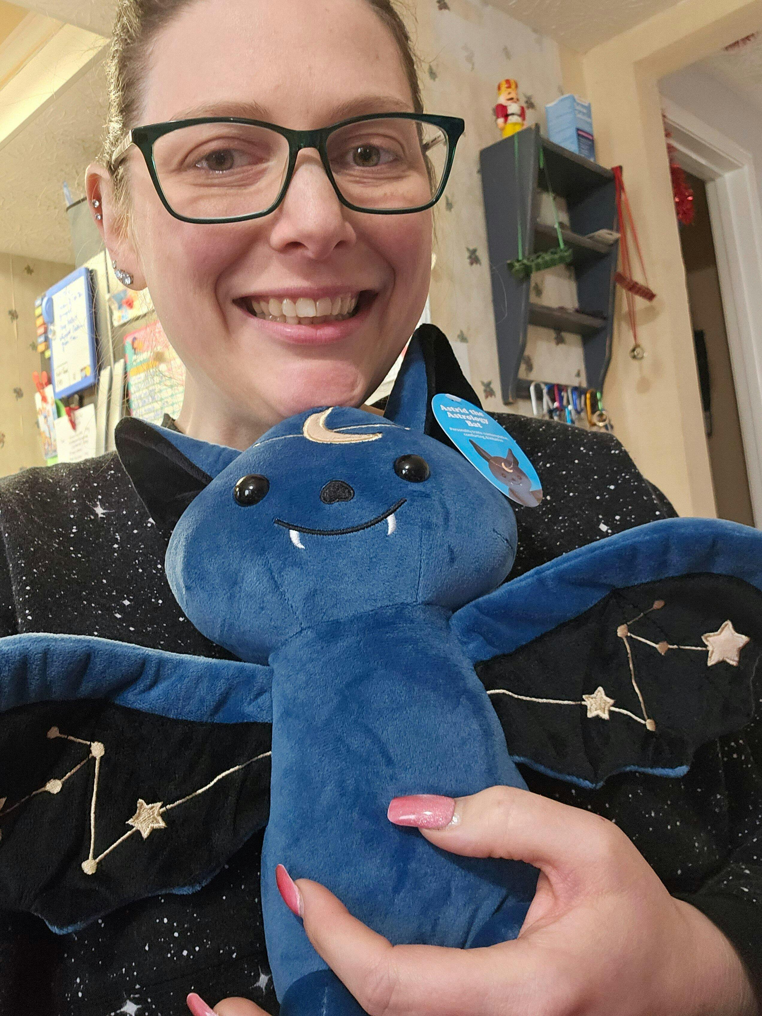 When I saw Binks I knew he'd be a perfect fit for my wife! He's a cute looking bat that came with special Halloween accessories! He came with a hoodie, and the package also included spooky knick nacks like a bracelet and stickers. My wife came home opened the package and fell in love again 😊 The only other man ill allow to share her heart lol! Welcome to the family Binks!