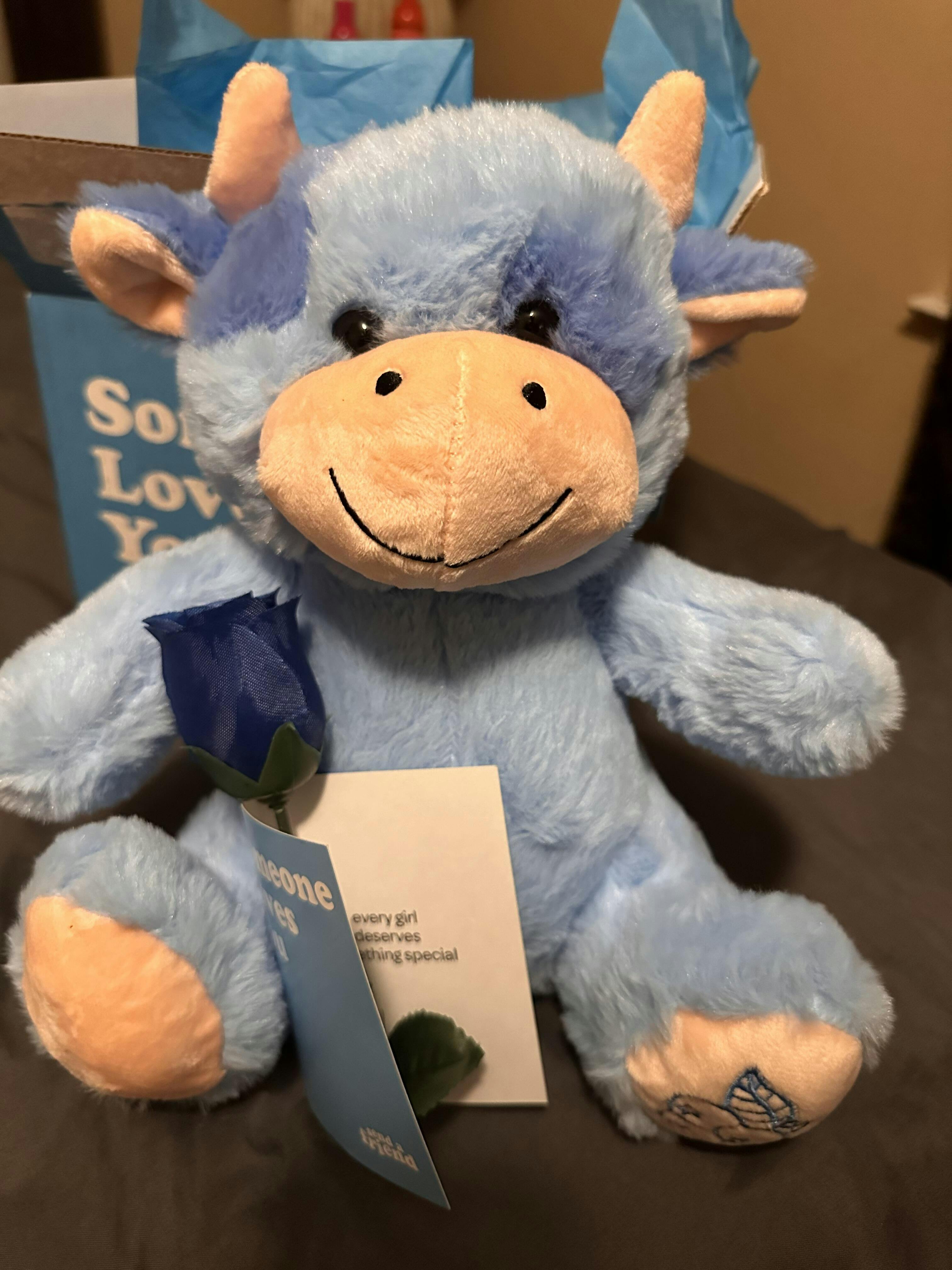 Gf smiled the whole time she opened it. loves cows and this is the best thing i’ve given her yet. very soft, very light, and great colours and says the wrapping and packaging was cute