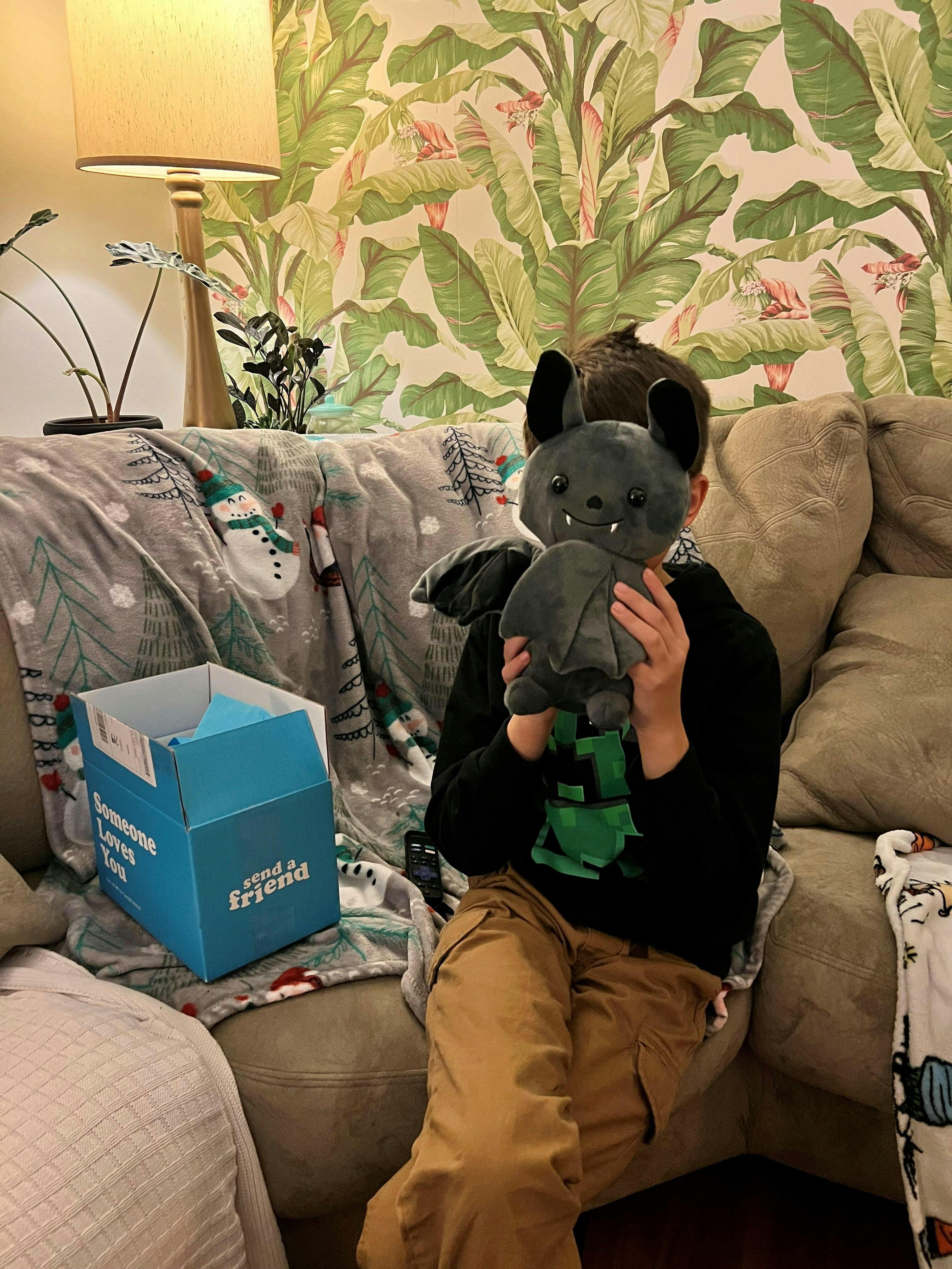 My sister and I (Barbie and Kathy) have, for years, called each other Battnie and Toddnie, or Batt and Todd/Toad for short. When I saw this bat, I knew I had to get it for her 66th birthday. The hitch - she lives in The Netherlands. Luckily she came for a short visit in March and I had the gift sent to myself. I arrived the day before she left! She LOVES IT!! It is a reminder of me, and a small comfort as she struggles with caring for her husband with dementia. Binks has found a loving home, next to Naked Mole Rat, Candy Cat and Mr. Dinosaur. This is beautifully packaged, obviously with love. I’m eager to use the service again!!