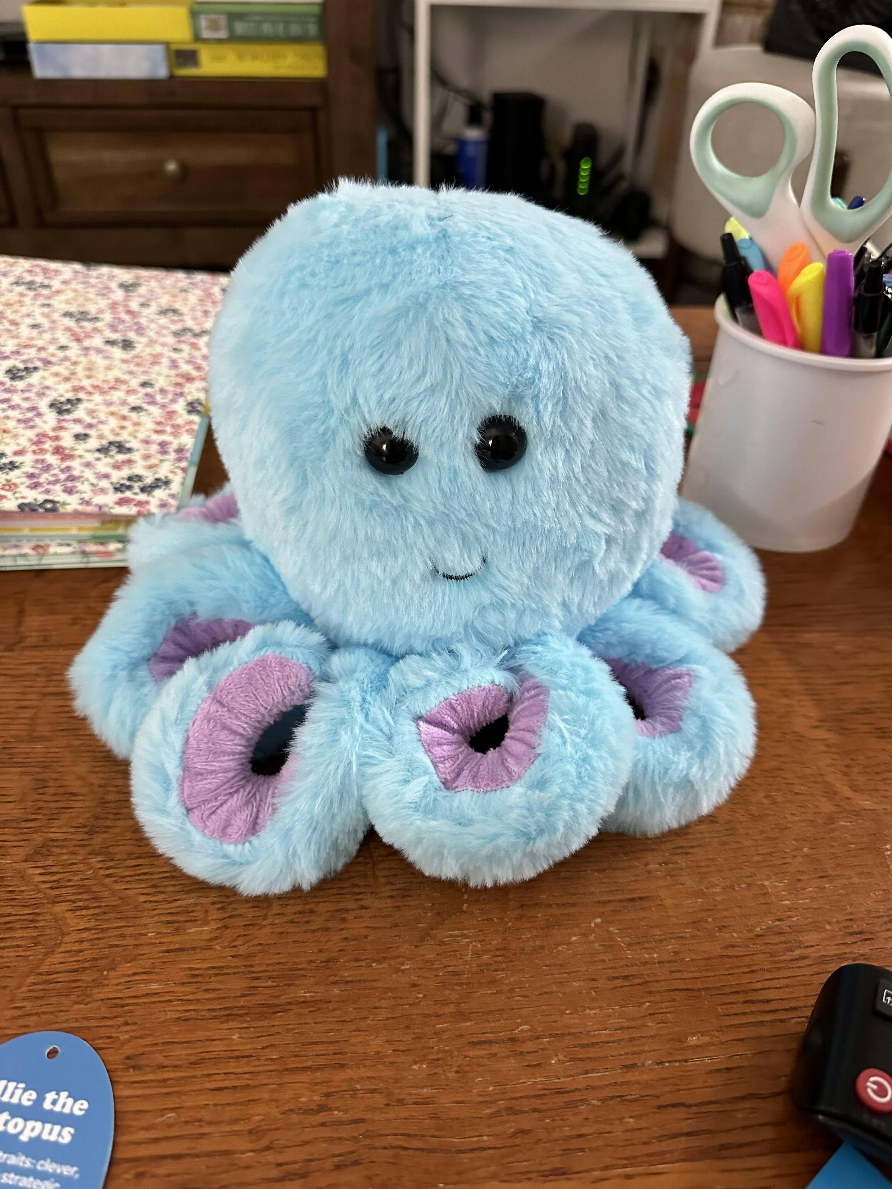 My daughter has a full time job and is also a realtor, and a client she has been working with for quite time were about to back out of the deal, but my daughter was able to negotiate $15k cash back at closing. Managing those calls and emails while tending to her other clients took an emotional toll on her. She was completely surprised when Ollie arrived, and he is her new emotional support octopus.